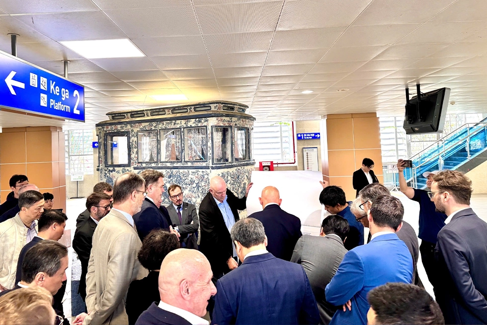 Đặc biệt, đoàn đại biểu cũng có dịp chiêm ngưỡng tác phẩm nghệ thuật "5 giờ sáng, Hà Nội thức giấc" – dự án kết hợp giữa nghệ thuật với giao thông công cộng, mang đến trải nghiệm văn hóa đặc sắc cho hành khách sử dụng metro.