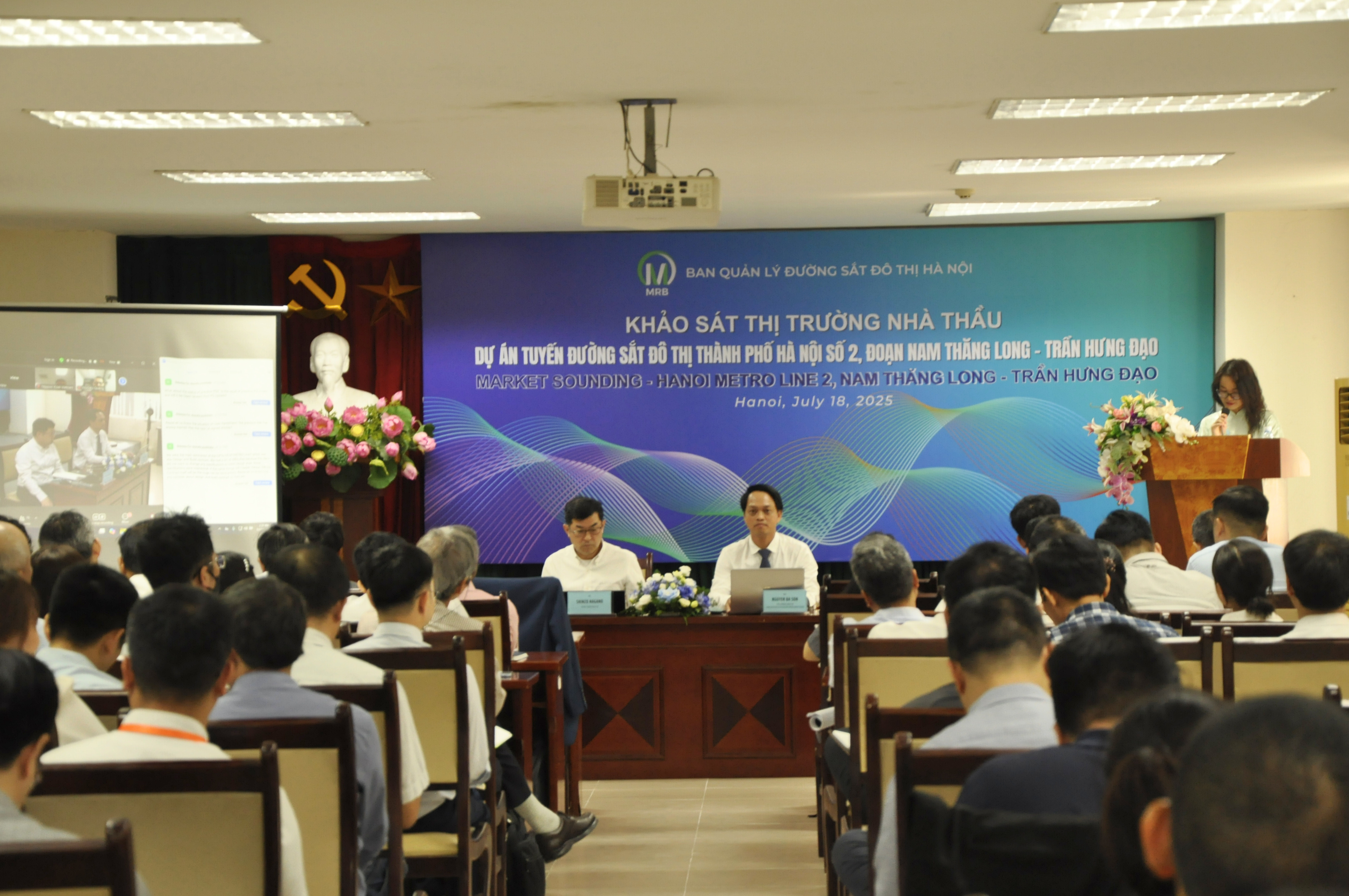 Sáng ngày 18/7/2025, Ban Quản lý Đường sắt đô thị Hà Nội đã tổ chức chương trình " Khảo sát thị trường các nhà thầu quan tâm đến Dự án tuyến đường sắt đô thị Hà Nội tuyến số 2, đoạn Nam Thăng Long – Trần Hưng Đạo", thu hút sự quan tâm lớn từ các nhà thầu trong và ngoài nước.