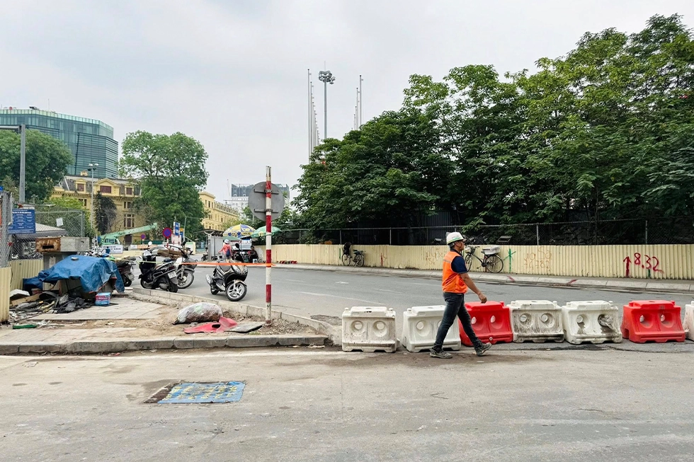 Một số hình ảnh trong sáng ngày 10/5/2025, ghi lại công tác rào chắn phục vụ thi công Ga ngầm S12, đường chuyển làn và Gara trên đường Trần Hưng Đạo thuộc dự án tuyến đường sắt đô thị thí điểm Thành phố Hà Nội, đoạn Nhổn - ga Hà Nội