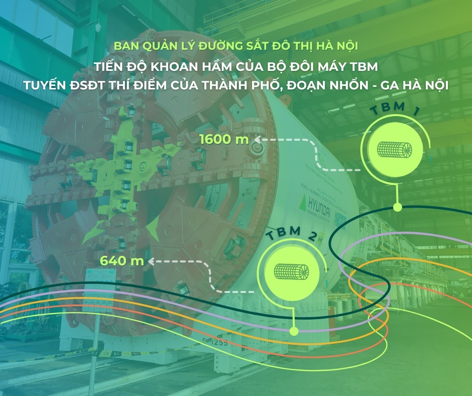 Tính đến thời điểm ngày 30/5/2025, tiến độ thi công khoan hầm bằng máy TBM (Tunnel Boring Machine) trên tuyến đường sắt đô thị thí điểm, đoạn Nhổn – Ga Hà Nội như sau:
